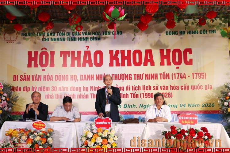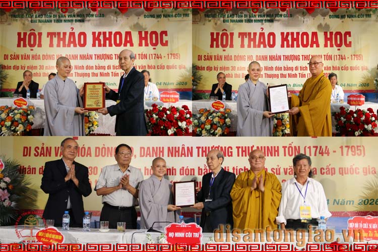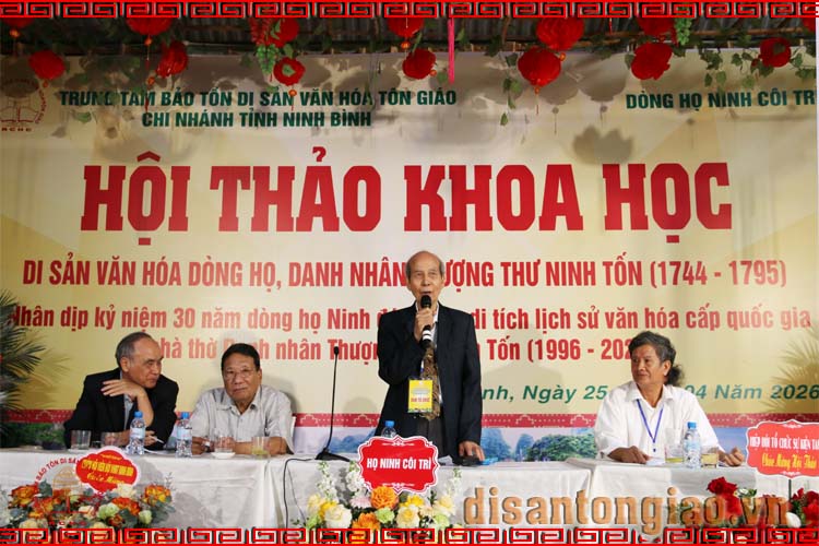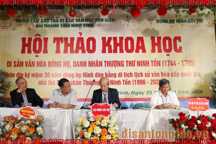 Sáng ngày 25/04/2026, tại chùa Yên Khoái Hạ, phường Đông Hoa Lư, tỉnh Ninh Bình, Trung tâm Bảo tồn Di sản Văn hóa Tôn giáo tổ chức Hội thảo khoa học: Di sản văn hóa dòng họ - Thượng thư Ninh Tốn (1744-1795). Hội thảo này là một trong chuỗi sự kiện nhân kỷ niệm 30 năm Nhà thờ Ninh Tốn ở làng Côi Trì, xã Yên Mạc, tỉnh Ninh Bình đón nhận Bằng Di tích Lịch sử - Văn hóa cấp Quốc gia (1996-2026).