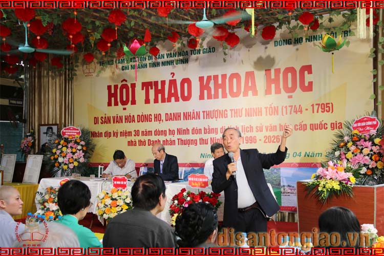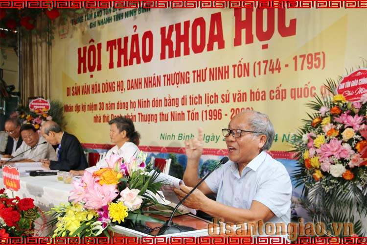 Ông Trần Khánh Dư, Giám đốc Trung tâm Bảo tồn Di sản Văn hóa Tôn giáo, nguyên Vụ trưởng Vụ Phật giáo Ban Tôn giáo Chính phủ với Đề dẫn của Hội thảo khoa học Di sản Văn hóa dòng họ - Thượng thư Ninh Tốn (1744-1795). Hội thảo mang hai ý nghĩa: i) Thực hiện ba trụ cột của ý thức cộng đồng người Việt mà cố Thủ tướng Phạm Văn Đồng đã nêu đó là: Gia đình, Làng và Nước nhằm đóng góp vào việc phát triển văn hóa dòng họ tiến tới phát triển văn hóa cộng đồng và xã hội; và, ii) Là dịp để các con cháu trong dòng họ hiểu sâu hơn về công lao của Thượng thư góp phần vào việc động viên, phục hồi lại nếp sống văn hóa truyền thống của dân tộc Việt Nam trong giai đoạn chuyển mình của kỷ nguyên mới.
