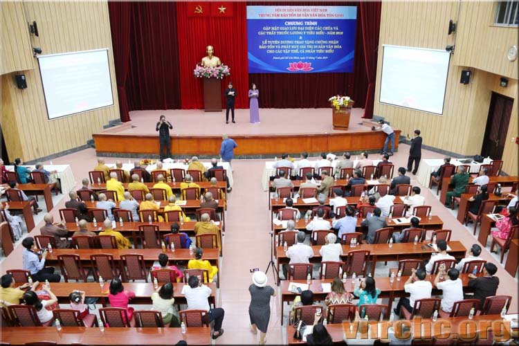 Nhằm ghi nhận, đánh giá cao và biểu dương các nhà quản lý, công tác xã hội, trụ trì các chùa, các cơ sở tự viện, chư tăng ni, tiêu biểu có thành tích xuất sắc đóng góp cho sự nghiệp bảo tồn và phát huy giá trị di sản văn hóa của đơn vị, địa phương trong thời kỳ hội nhập và phát triển. Trung tâm Bảo tồn Di sản Văn hóa Tôn giáo tổ chức chương trình gặp gỡ giao lưu hôm nay, trong khuôn khổ chương trình Ban Tổ chức trao chứng nhận Bảo tồn và Phát huy giá trị di sản văn hóa tôn giáo tâm tinh chùa Việt cho các đơn vị chùa tiêu biểu, và bảng chứng nhận bảo tồn và phát huy giá trị di sản văn hóa Phật giáo Việt Nam cho các cá nhân tiêu biểu.