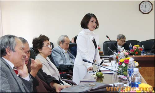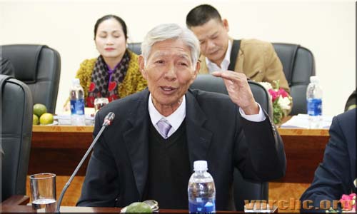 Nhà giáo Hoàng Xuân Khóa, PCT Hội Kiều học Việt Nam trong những phản biện sau tham luận của tác giả trình bày.