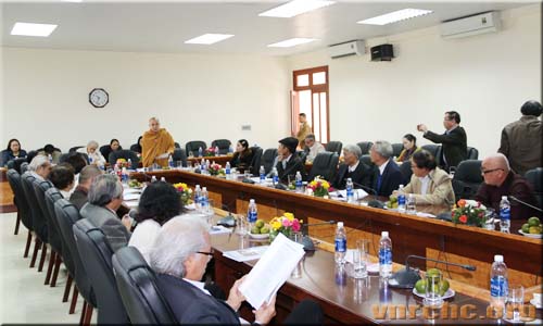 Chủ tọa: TS Bùi Hữu Dược, Vụ trưởng Vụ Phật giáo Ban Tôn giáo Chính phủ; Ông Trần Khánh Dư, Giám đốc Trung tâm Bảo tồn Di sản Văn hóa Tôn giáo; PGS.TS Đặng Văn Bài, Phó Chủ tịch Hội Di sản Văn hóa Việt Nam.