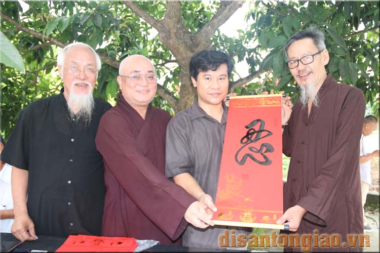 Hòa thượng Thích Tâm Vượng, Phó Giám đốc Trung tâm Bảo tồn Di sản Văn hóa Tôn giáo và Câu lạc bộ Thư pháp Xuân Hồng viết tặng chữ các vị khách quý, đại biểu tham dự Hội thảo.