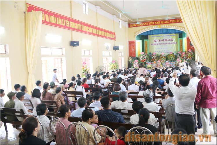 Khung cảnh Hội thảo khoa học Danh nhân Văn hóa Hoàng giáp Trần Hữu Thành tổ chức tại Nhà Văn hóa UBND xã Yên Trung, huyện Ý Yên, tỉnh Nam Định sáng ngày 12 tháng 7 năm 2020.