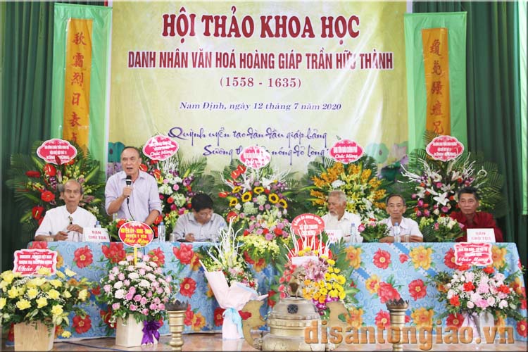 Chủ tọa Hội thảo khoa học Danh nhân Văn hóa Hoàng giáp Trần Hữu Thành gồm: Ông Trần Khánh Dư, Giám đốc Trung tâm Bảo tồn Di sản Văn hóa Tôn giáo; PGS.TS Phạm Văn Khoái, Trường Đại học Khoa học Xã hội và Nhân văn, Đại học Quốc gia Hà Nội; PGS.TS Đặng Văn Bài, Phó Chủ tịch Hội Di sản Văn hóa Việt Nam; Đại diện các chi họ: ông Trần Văn Phúc, ông Trần Văn Vinh, và, ông Trần Văn Kha (từ trái sang).