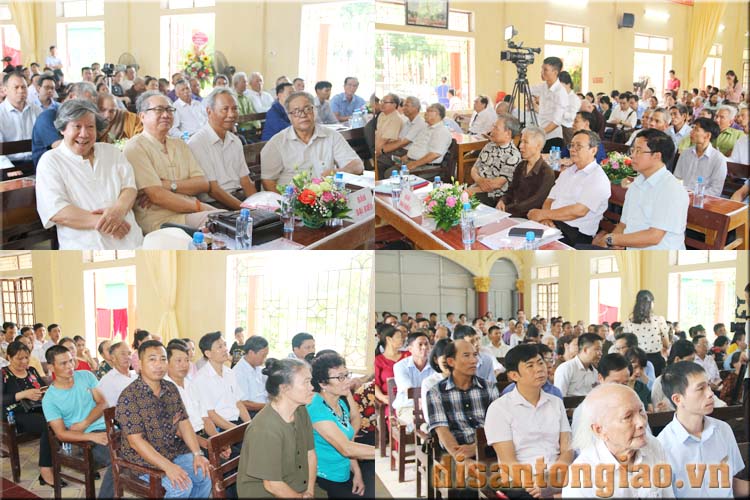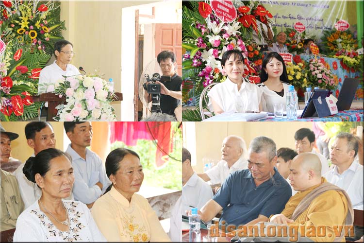 Ông Trần Diên Linh, Trung tâm Bảo tồn Di sản Văn hóa Tôn giáo khai mạc Hội thảo; Thư ký Hội thảo: Cử nhân Nguyễn Thu Hà, Hội Di sản Văn hóa Việt Nam và Cử nhân báo chí Nguyễn Thị Chung, Trung tâm Bảo tồn Di sản Văn hóa Tôn giáo; Các hậu duệ Hoàng giáp; Đại đức Thích Thiện Thông, Giám đốc Văn phòng Đại diện Trung tâm Bảo tồn Di sản Văn hóa Tôn giáo tại Hội thảo (từ trái sang, từ trên xuống).