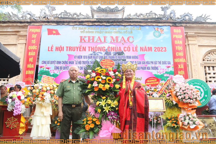 Chúng đệ tử Tổ đình Cổ Lễ tặng lẵng hoa kính mừng Hòa thượng Thích Tâm Vượng.
