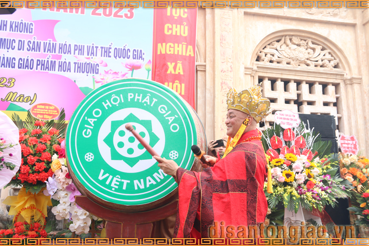 Hòa thượng Thích Tâm Vượng đánh trống khai hội Lễ hội chùa Cổ Lễ - Di sản Văn hóa phi vật thể Quốc gia.