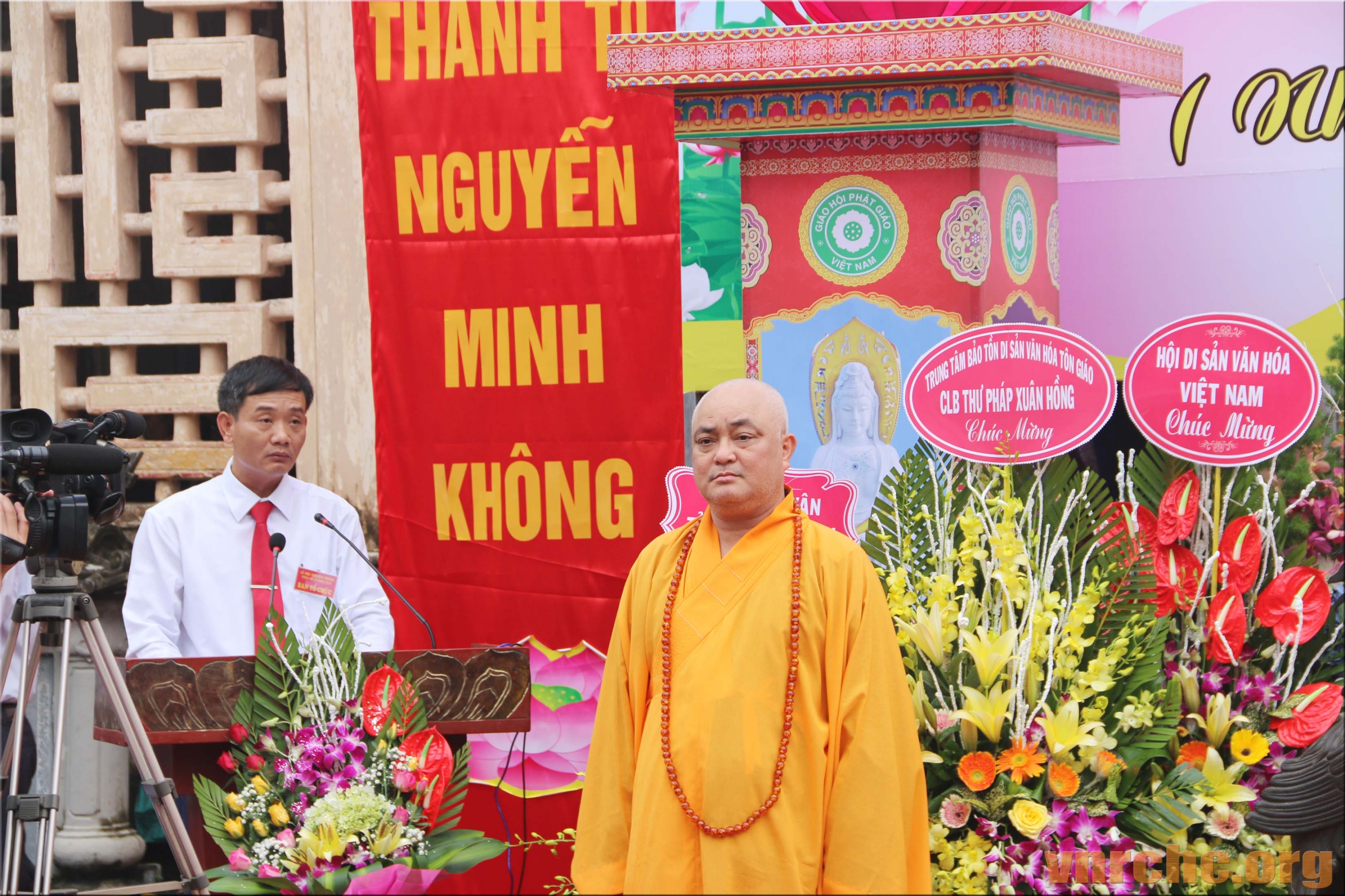 Thượng tọa Thích Quảng Hà, PCT HĐTS, Trưởng BTS GHPGVN tỉnh Nam Định phát biểu chúc mừng lễ hội và tặng hoa tới Thượng tọa Thích Tâm Vượng.