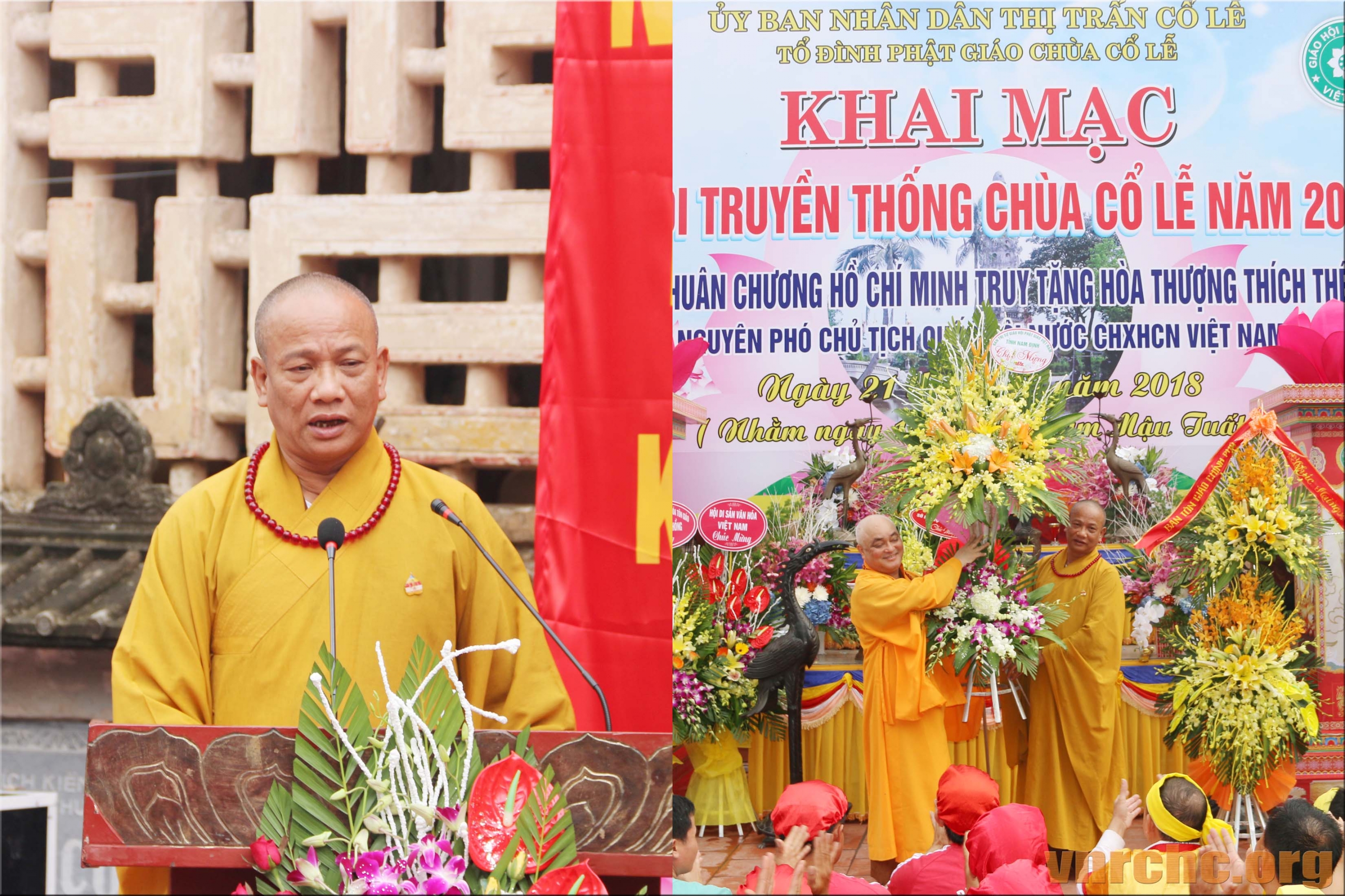 Thượng tọa Thích Tâm Vượng, Viện chủ Tổ đình Phật giáo chùa Cổ Lễ thành kính tri ân và trân trọng cảm ơn đến toàn thể đại biểu, nhân dân tham dự và đánh trống khai hội.