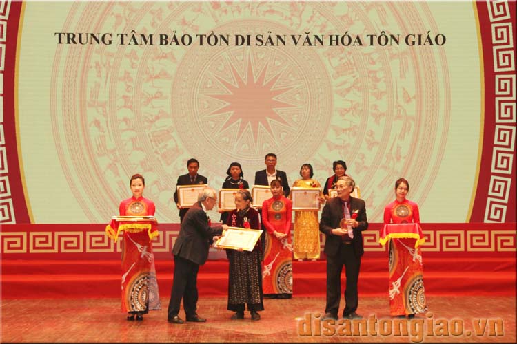 PGS.TS Đặng Văn Bài và PGS.TS Phạm Mai Hùng, Phó Chủ tịch Hội Di sản Văn hóa Việt Nam trao tặng Bằng khen đến các tập thể và cá nhân đã có những đóng góp tích cực trong sự nghiệp bảo vệ và phát huy giá trị di sản văn hóa dân tộc Việt Nam.