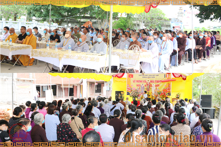 Các chư tôn đức, tăng ni, lãnh đạo các cơ quan cấp tỉnh, cấp huyện và địa phương cùng toàn thể tín đồ và Phật tử nhân dân làng Thủy Nhai đã hoan hỷ quang lâm chứng minh Lễ mừng công mái thượng ngôi Tam Bảo.
