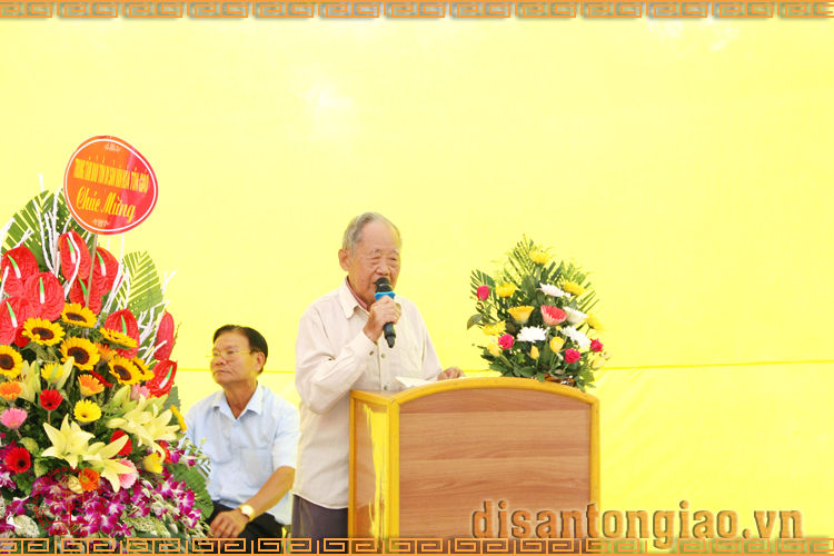 Hòa thượng Thích Tâm Vượng, Trưởng sơn môn tổ đình Cổ Lễ phát biểu và ban đạo từ cho tín đồ Phật tử tại lễ mừng công mái thượng ngôi Tam Bảo.