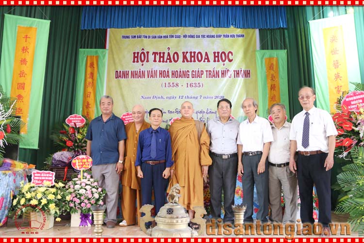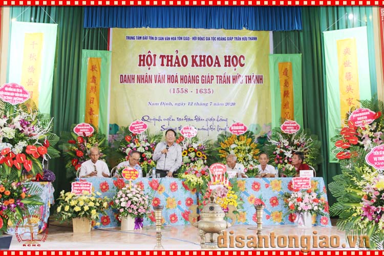 Chủ tọa Hội thảo khoa học Danh nhân Văn hóa Hoàng giáp Trần Hữu Thành gồm: Ông Trần Khánh Dư, Giám đốc Trung tâm Bảo tồn Di sản Văn hóa Tôn giáo; PGS. TS. Phạm Văn Khoái, Trường Đại học Khoa học Xã hội và Nhân văn - Đại học Quốc gia Hà Nội; PGS. TS. Đặng Văn Bài, nguyên Cục trưởng Cục Di sản Văn hóa - Bộ Văn hóa Thể thao và Du lịch; Đại diện các chi họ: ông Trần Văn Phúc, ông Trần Văn Vịnh và ông Trần Văn Pha (từ trái sang).