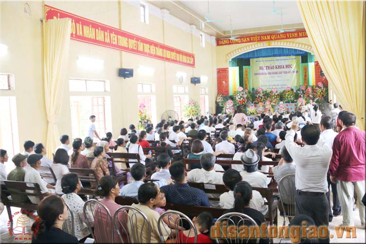Khung cảnh Hội thảo khoa học Danh nhân Văn hóa Hoàng giáp Trần Hữu Thành tổ chức tại Nhà Văn hóa UBND xã Yên Trung, huyện Ý Yên, tỉnh Nam Định sáng ngày 12 tháng 7 năm 2020.