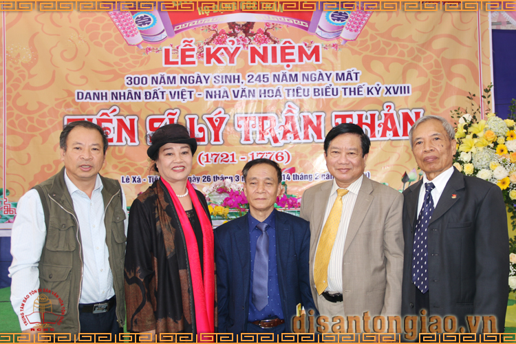 Nhà văn Nguyễn Thế Vinh, Thành viên Trung tâm Bảo tồn Di sản Văn hóa Tôn giáo (đứng giữa) trong Lễ kỷ niệm 300 năm sinh Tiến sĩ Lý Trần Thản (1721-1776) vào ngày 26 tháng 2 năm 2021.