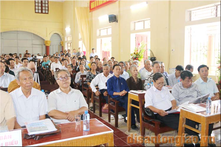 Các đại biểu, khách quý và bà con dòng tộc tại Hội thảo khoa học: Danh nhân Văn hóa Hoàng giáp Trần Hữu Thành tổ chức tại Nhà Văn hóa UBND xã Yên Trung, huyện Ý Yên, tỉnh Nam Định ngày 12/7/2020.