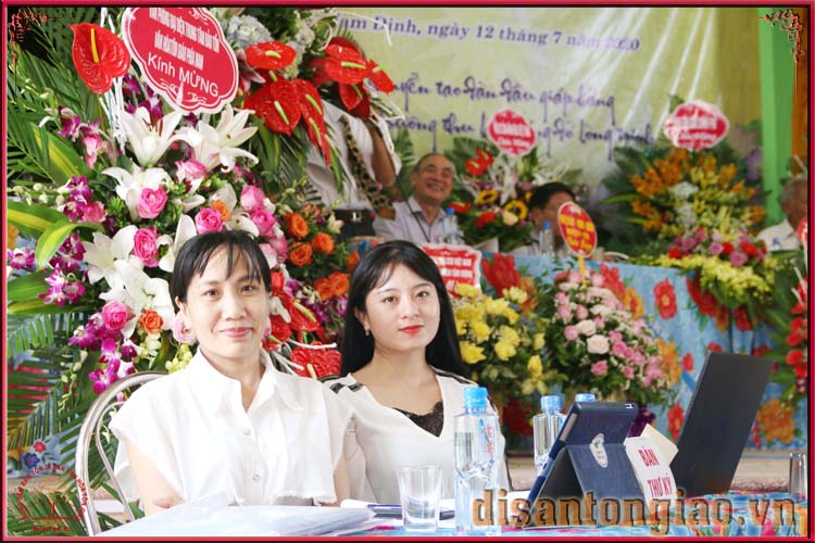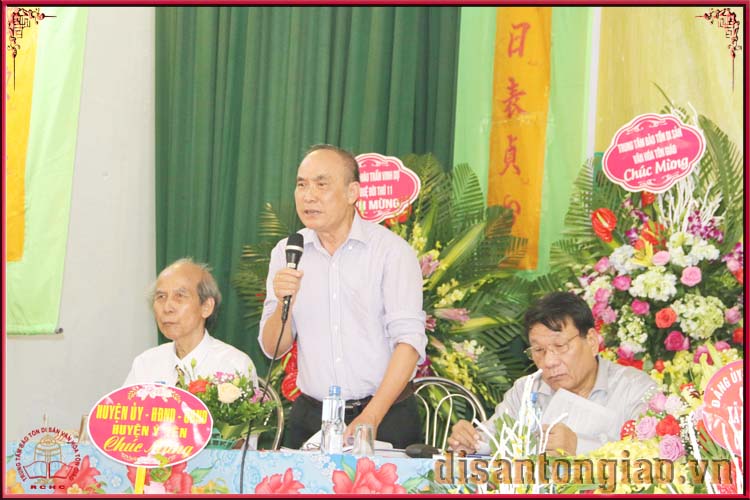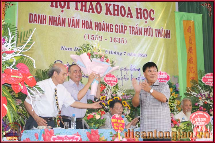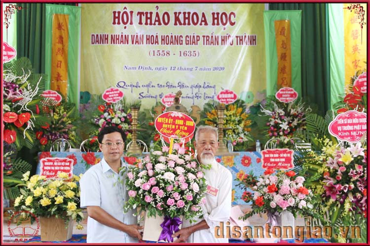 Ông Trần Văn Phúc đón nhận lẵng hoa của Huyện ủy, Ủy ban nhân dân, Hội đồng nhân dân được ông Nguyễn Đức Du, Ủy viên Ban Thường vụ Huyện ủy, Phó Chủ tịch UBND huyện Ý Yên, tỉnh Nam Định chúc mừng Hội thảo Khoa học Danh nhân Văn hóa Hoàng giáp Trần Hữu Thành (1558-1635), Hội thảo cũng nhận được các lẵng hoa chúc mừng của các cấp Chính quyền địa phương, các tổ chức, cá nhân và các thế hệ hậu duệ Hoàng giáp.