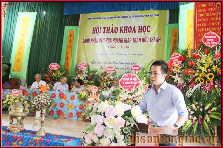 Thạc sĩ Nguyễn Đức Bá, Trưởng phòng Nghiên cứu Di sản - Trung tâm Bảo tồn Di sản Văn hóa Tôn giáo tham luận tại Hội thảo với tựa đề "Học vấn một nhà khoa bảng - Khí tiết một vị thanh quan Đề hình Giám sát Ngự sử Hoàng giáp Trần Hữu Thành (1358-1635)".