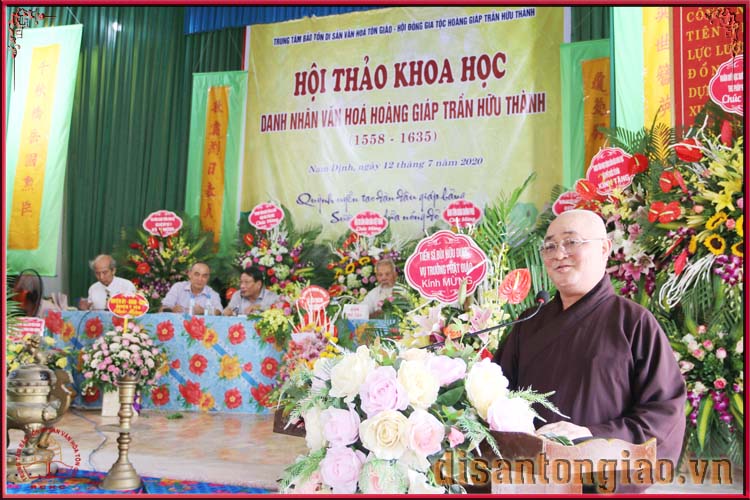 Hòa thượng Thích Tâm Vượng, Phó Giám đốc Trung tâm Bảo tồn Di sản Văn hóa Tôn giáo, Viện chủ Tổ đình Phật giáo chùa Cổ Lễ, thị trấn Cổ Lễ, huyện Trực Ninh, tỉnh Nam Định phát biểu tại Hội thảo Khoa học Danh nhân Văn hóa Hoàng giáp Trần Hữu Thành (1558-1635).