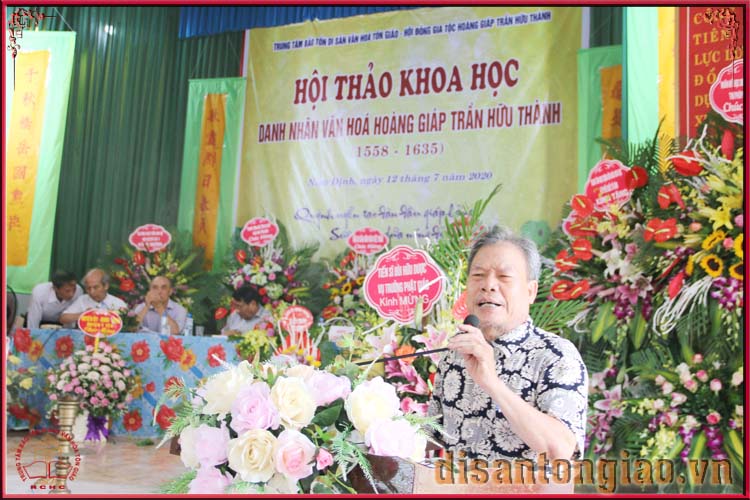 PGS.TS Đặng Văn Bài, nguyên Cục trưởng Cục Di sản Văn hóa - Bộ Văn hóa Thể thao và Du lịch, Phó Chủ tịch Hội Di sản Văn hóa Việt Nam tham luận tại Hội thảo Khoa học với tựa đề "Suy nghĩ về văn hóa dòng họ từ trường hợp Danh sĩ Hoàng giáp Trần Hữu Thành".