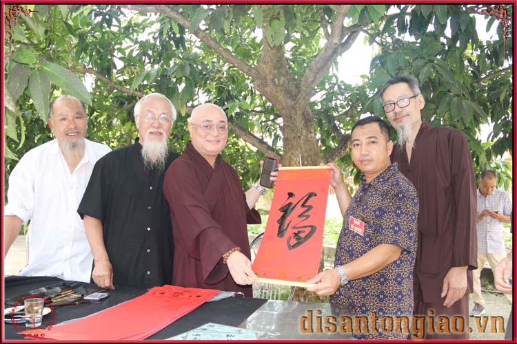 Bên lề Hội thảo, Hòa thượng Thích Tâm Vượng cùng Câu lạc bộ Thư pháp Xuân Hồng viết tặng chữ cho các đại biểu, khách quý tham dự Hội thảo.
