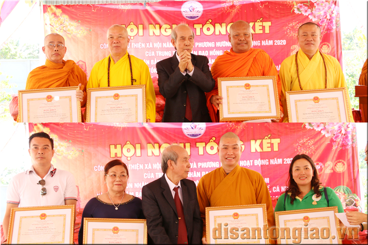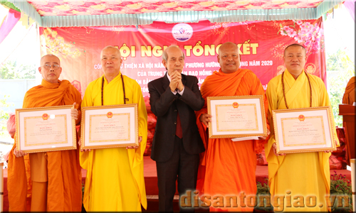 Ông Trần Khánh Dư, Giám đốc Trung tâm trao Giấy khen của của Trung tâm Bảo tồn Di sản Văn hóa Tôn giáo tới các Tăng Ni hiện đang trụ trì tại các cơ sở tôn giáo và các mạnh thường quân cùng các Trưởng Hội Từ thiện.