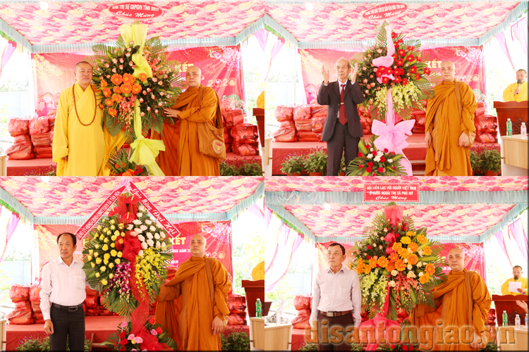 Tại buổi lễ, Đại đức Thích Thiện Thông, Giám đốc VPĐD phía Nam nhận lẵng hoa chúc mừng của: Thượng tọa Thích Nguyên Thái, Phó Trưởng Ban Trị sự GHPGVN tỉnh BR-VT; ông Trần Khánh Dư, Giám đốc Trung tâm; ông Nguyễn Hữu Điệp, Bí thư Đảng ủy xã Tân Hòa, thị xã Phú Mỹ; ông Nguyễn Văn Hồng, Chủ tịch Hội Liên lạc người Việt Nam ở nước ngoài.