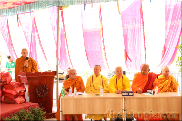 Thượng tọa Thích Minh Nhứt, Ủy viên Thường trực Hội đồng Cố vấn Văn phòng Đại diện phía Nam phát biểu khai mạc và Báo cáo tổng kết hoạt động của Đại đức Thích Thiện Thông, Giám đốc Trung tâm Nhân đạo Hồng Quang.