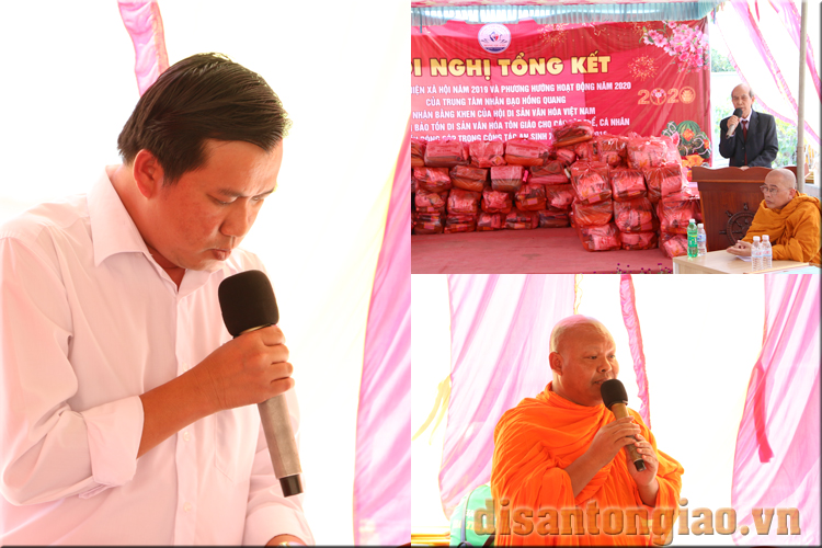 Phát biểu tại lễ tổng kết công tác từ thiện xã hội: Ông Nguyễn Xuân Bình, Phó Trưởng Phòng Lao động Thương binh và Xã hội thị xã Phú Mỹ; Ông Trần Khánh Dư, Giám đốc Trung tâm Bảo tồn Di sản Văn hóa Tôn giáo; Thượng tọa Quách Thành SatTha, Ủy viên Ban Trị sự Trung ương Giáo hội Phật giáo Việt Nam, Phó Trưởng Ban Trị sự GHPGVN tỉnh Bà Rịa- Vũng Tàu.