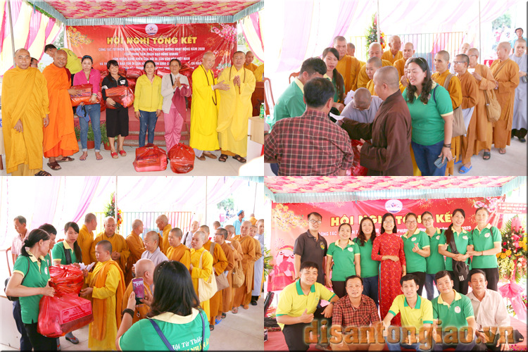 Nhân dịp này, bà Đinh Thị Thu Hằng, Trưởng Hội Từ thiện Trái tim Nhân ái đã vận động hơn 100 phần quà dành tặng các Tăng Ni, Phật tử, các gia đình có hoàn cảnh khó khăn tại địa phương. và, đại diện các Hội Từ thiện chụp hình kỷ niệm tại lễ tổng kết.