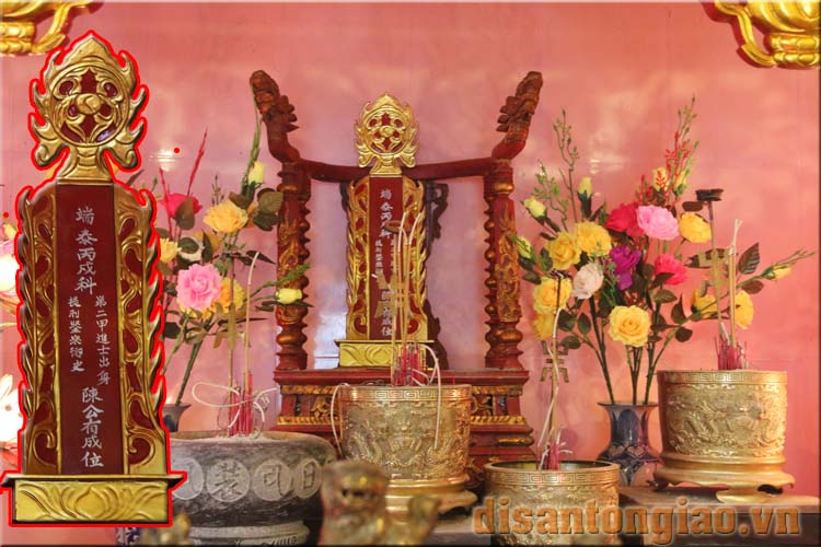 端泰丙戌科、第二甲進士出身、提刑鑑察御史、陳公有成位 Đoan Thái Bính Tuất khoa, Đệ nhị giáp Tiến sĩ xuất thân, Đề hình Giám sát ngự sử, Trần công Hữu Thành vị - Bài vị thờ của Ông Trần Hữu Thành, đỗ Đệ nhị giáp Tiến sĩ khoa Bính Tuất niên hiệu Đoan Thái, giữ chức Đề hình Giám sát Ngự sử.